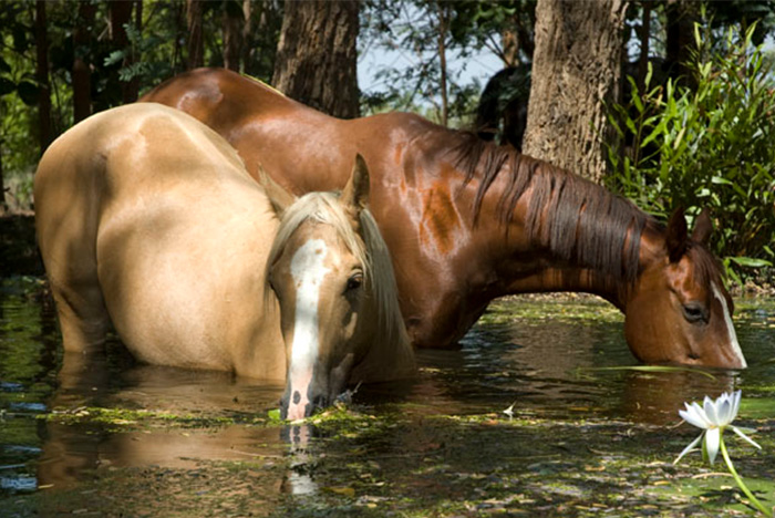 Judy in 2002 with her horse at Udialla, a remote homestead along the Fitzroy river.
