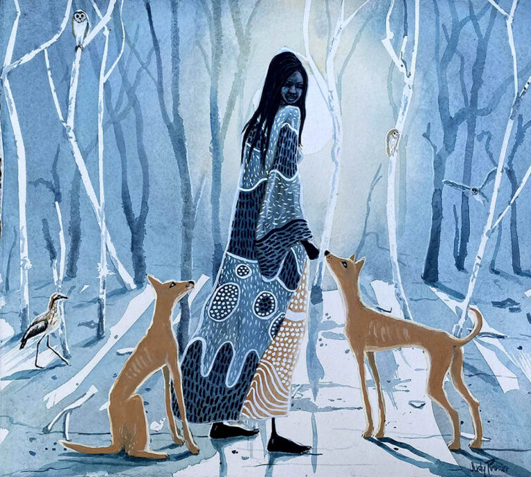 Desert Woman with Dingoes